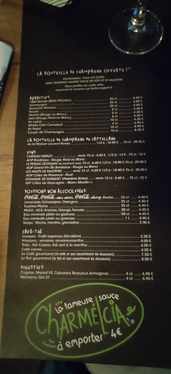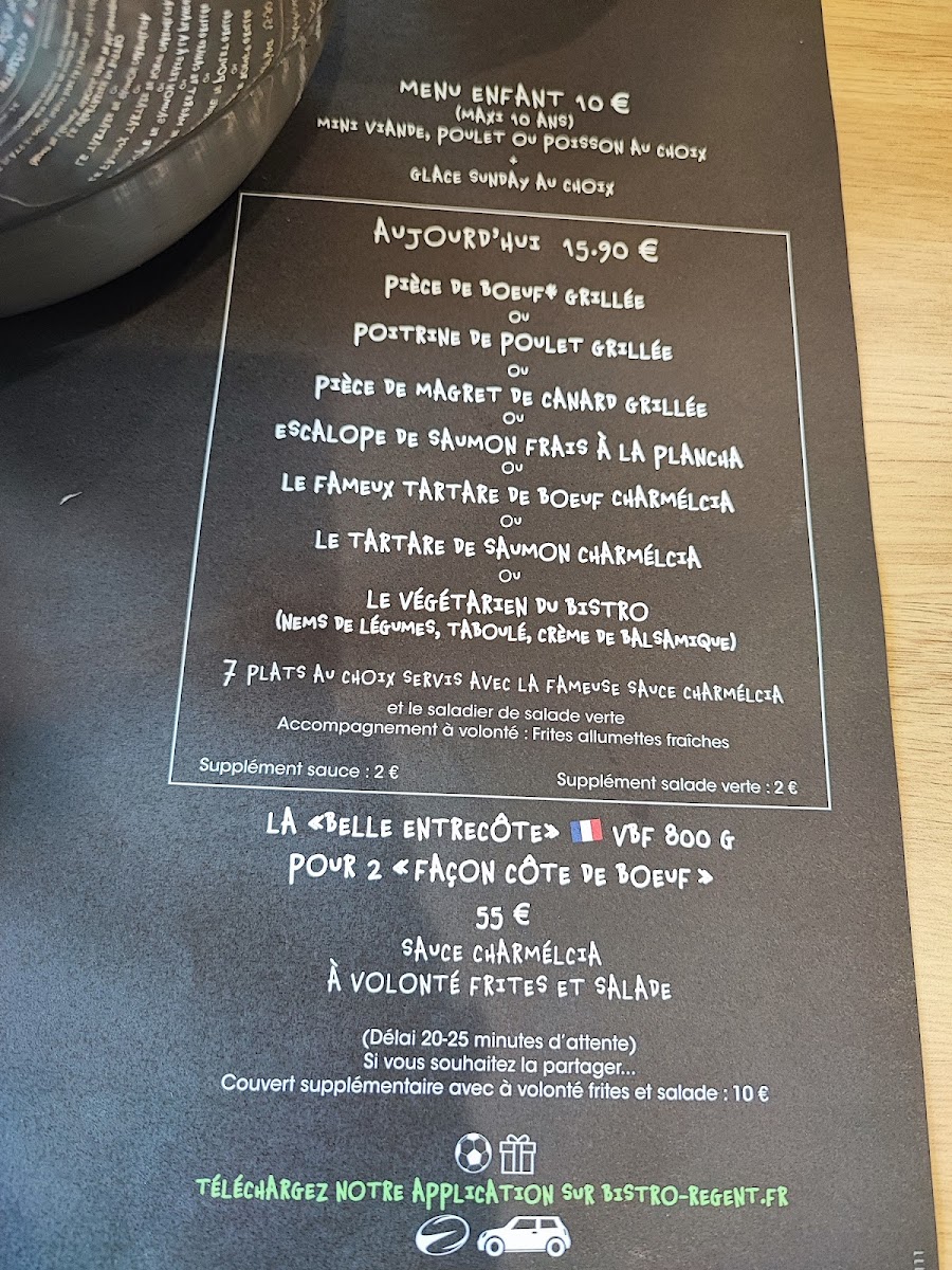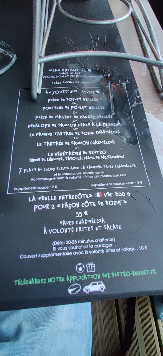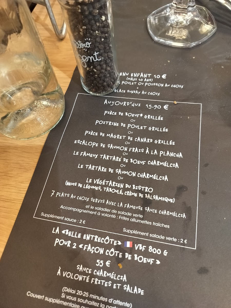 Bistro Régent in Saint-Jory offers a warm and inviting French dining experience known for its excellent service and well-executed classic dishes. The menu highlights include hearty entrecôtes, perfectly cooked and accompanied by the signature Charmelcia sauce, which customers rave about for its rich flavor. Visitors appreciate the generous portions, like the 800g steak meant for sharing, and the option to complement meals with crispy fries and quality sauces available to take home.